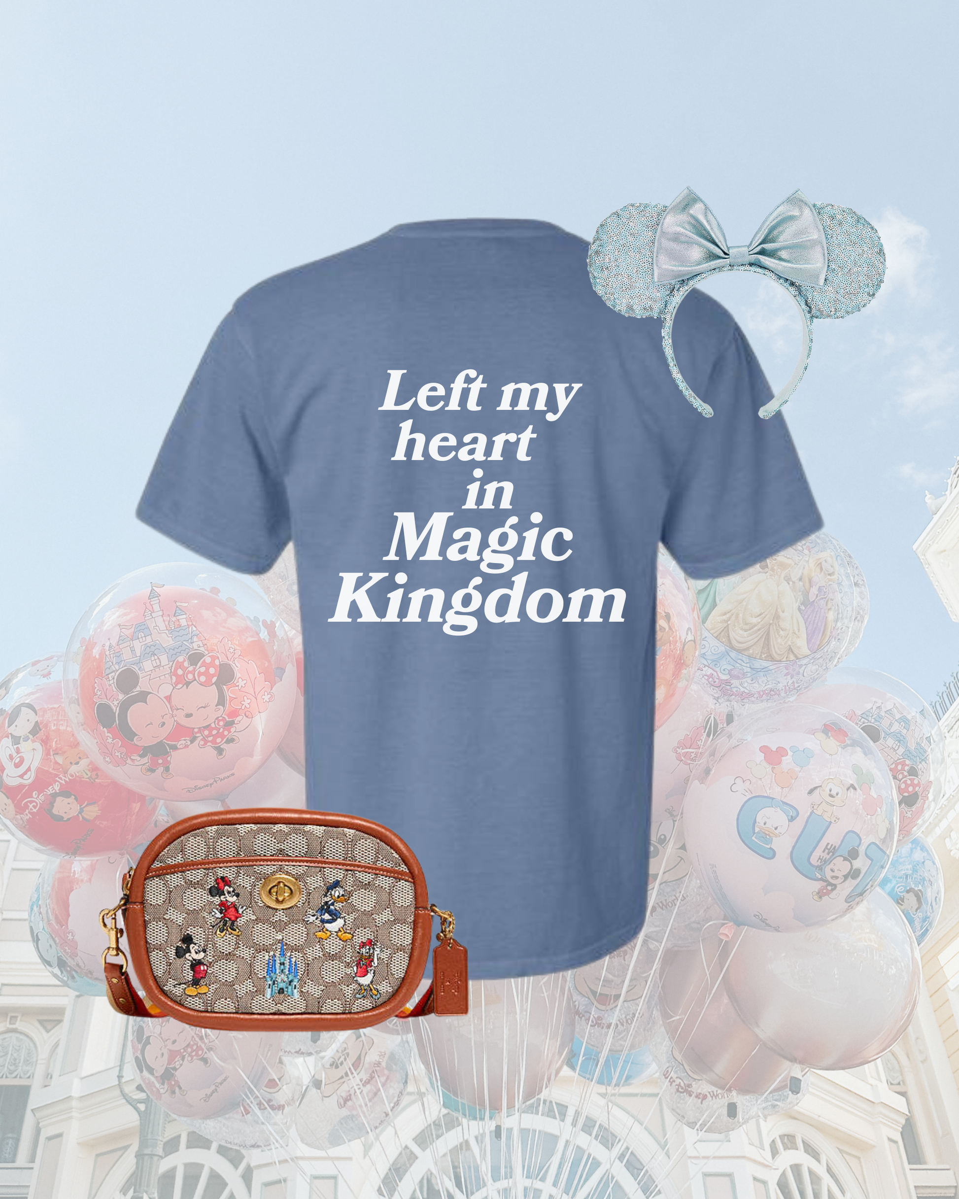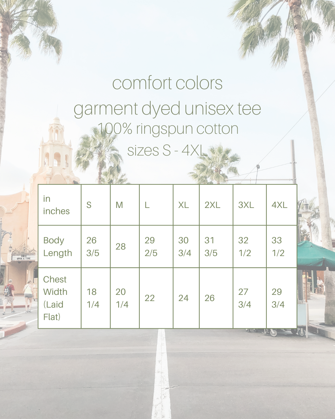 choose your favorite park! (east coast for now, west coast coming soon!) magic, animal, ep cot, and hollywood. printed on the front pocket and back, on Comfort Colors tees.